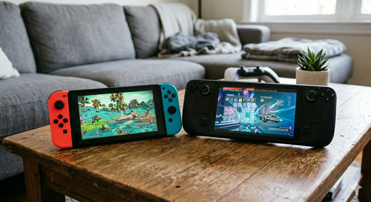 Nintendo Switch系列与Steam Deck可作为便携掌机游玩。尤其是初代Switch,与现行的其他硬件相比其性能略显不足。对于需要进行开放世界宇宙探索的《无人深空》来说,向这种限制比较严格的设备上移植极为困难。