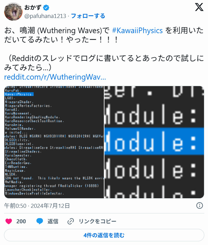这套头发的物理系统,很可能是使用了名为“KawaiiPhysics”的插件,该插件的作者“おかず”曾就职于Epic Games,现在是出于兴趣进行开发。作者本人也在X上发过推文,所以头发的动态表现很大概率要归功于“KawaiiPhysics”。