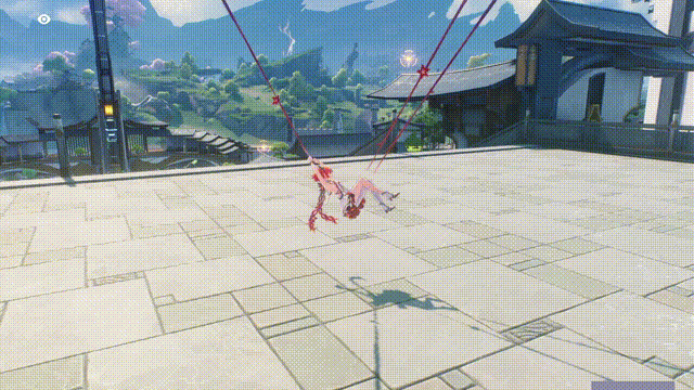 这个看起来也真的让人非常头疼……我不太清楚他们是怎么控制的。大概率没有使用物理演算引擎,因为如果这里用了物理演算,事情会变得非常恐怖。绳子会像弹簧一样随着角色的动作伸缩,各种元素都会受到牵扯和影响。这种动作即使是用动作捕捉也很难做出来,所以可能也是手工做出来的动画。但不管怎样,我总觉得“椿”这个角色整体上就充满了让开发者想哭的设计。