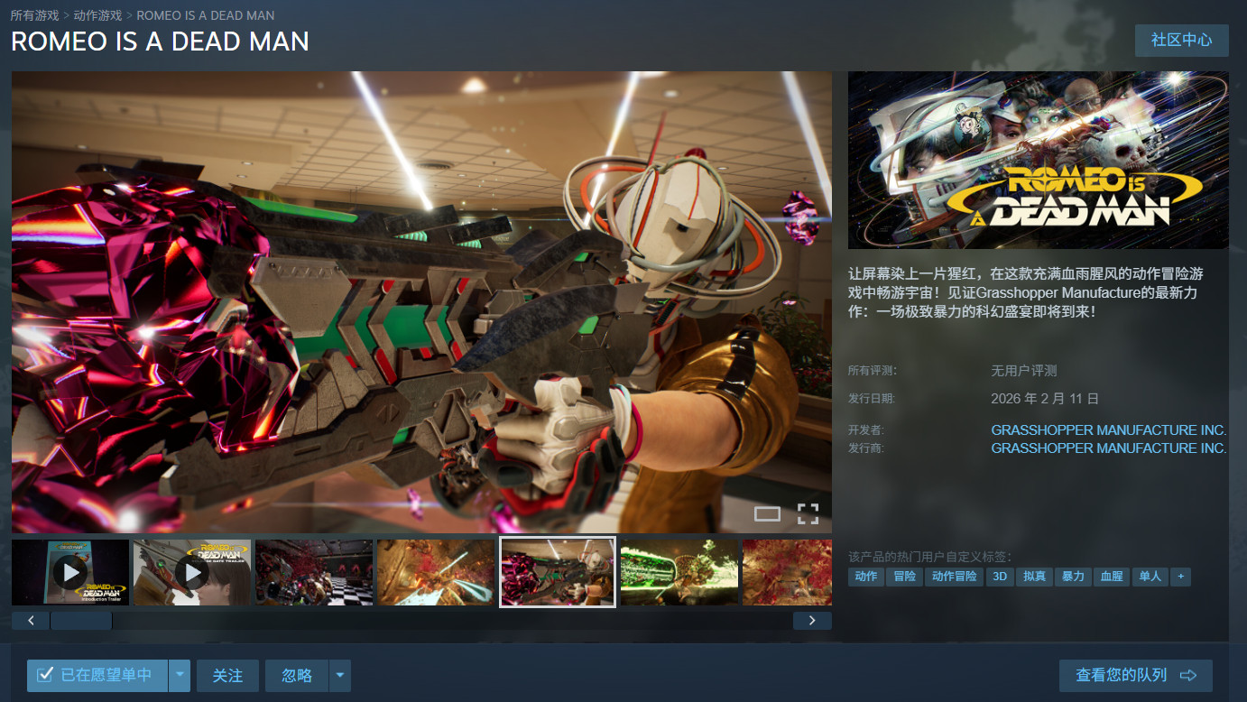 由草蜢工作室打造的全新作品《罗密欧是个绝命侠》(ROMEO IS A DEAD MAN)其Steam商店页面前几日曾出现中国区用户无法访问(锁区)的现象。但如今已经恢复访问,看来只是虚惊一场。