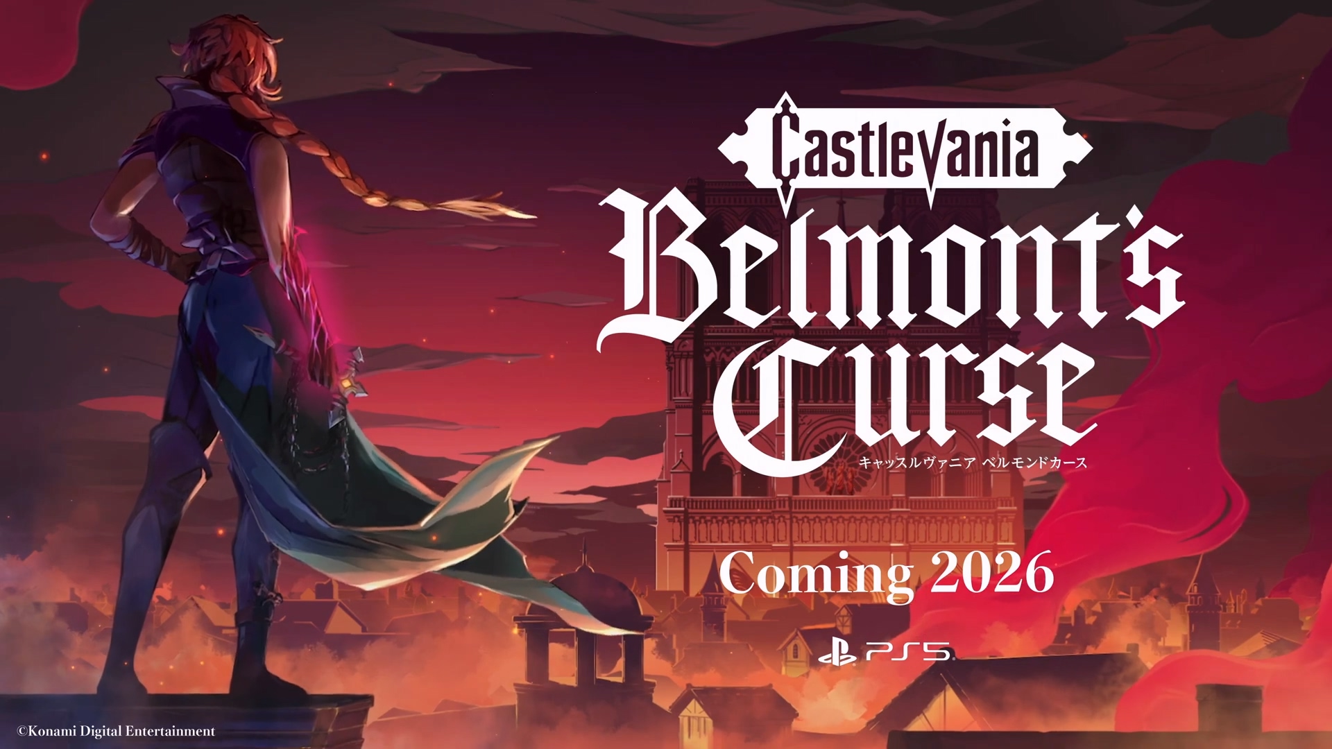 KONAMI公布《恶魔城》系列新作《恶魔城:贝尔蒙特的诅咒》,预定于2026年内登陆PS5、Switch、Xbox、PC平台。。本作为系列40周年纪念作品,将采用经典的2D动作玩法。故事发生在《恶魔城传说》23年之后,玩家将跟随年轻的贝尔蒙特展开冒险。