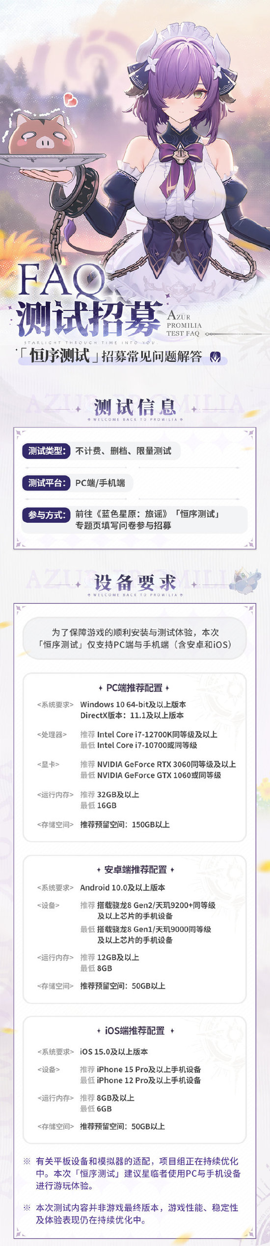 此外手机平台(iOS/安卓)这次也是首度进行测试。《蓝色星原:旅谣》的画面效果十分出色,上次测试中即便是高配置PC都难以驾驭,经过调整优化之后在手机上的实际性能表现也十分值得关注。