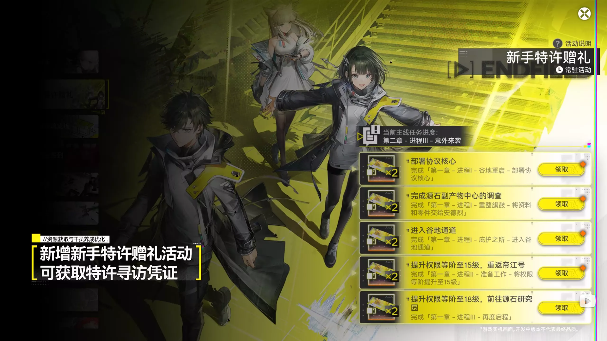 ·新增新手特许赠礼活动,可获得10张特许寻访凭证(限定池券)