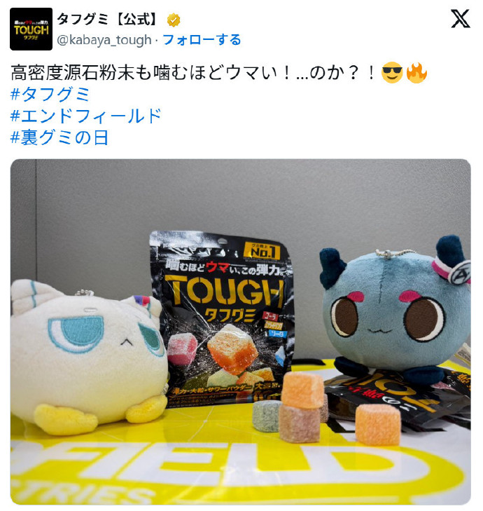 而如今,《明日方舟:终末地》和TOUGH GUMMY真的开启了联动。所以这些“矿石”吃起来究竟是什么味道?实际上虽然名为软糖,但TOUGH GUMMY的这种软糖十分有嚼劲,吃起来还真有点费劲。值得一提的是TOUGH GUMMY软糖在国内也可以通过淘宝等平台买到,感兴趣的朋友不妨买来尝尝。