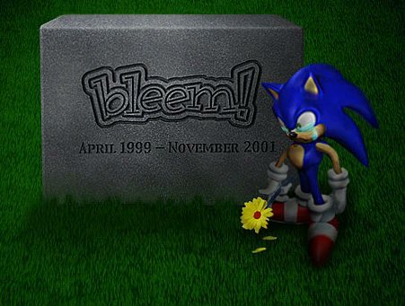 值得一提的是,bleem!最后在官网放出的一张图,是索尼克手持鲜花在bleem!的墓前哭泣,如今看来这张图还是很有深意的。