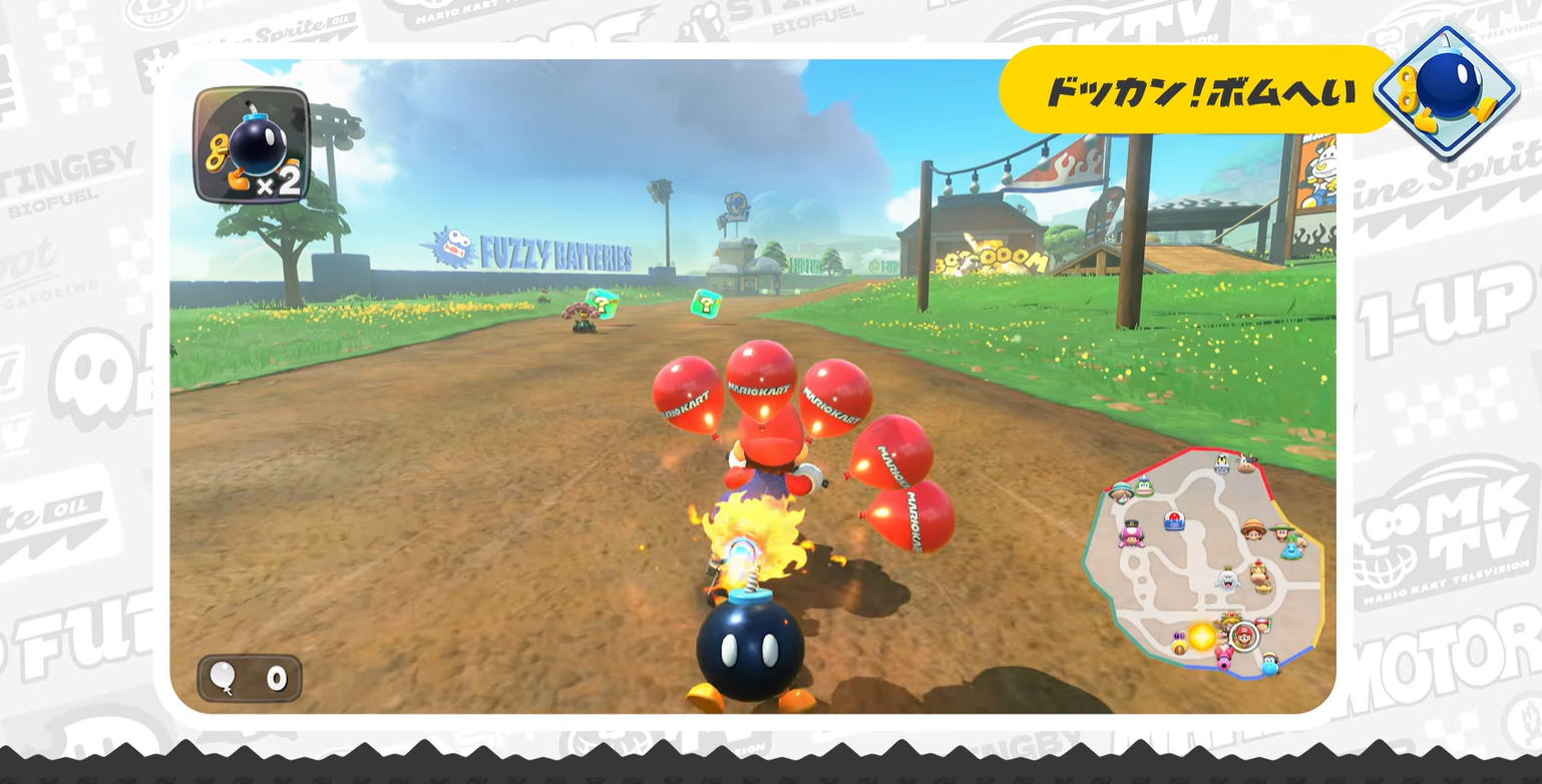 《马力欧卡丁车:世界》1.6.0版本更新今日上线,新增“爆炸!炸弹兵”模式。玩家最多可积攒10个炸弹兵道具,通过投掷炸弹攻击对手,在战斗模式“气球对战”和“收集金币”中也可以使用。另外同步优化了“炮弹刺客”的道具性能,使其更易实现抄近道,提升对战策略性。