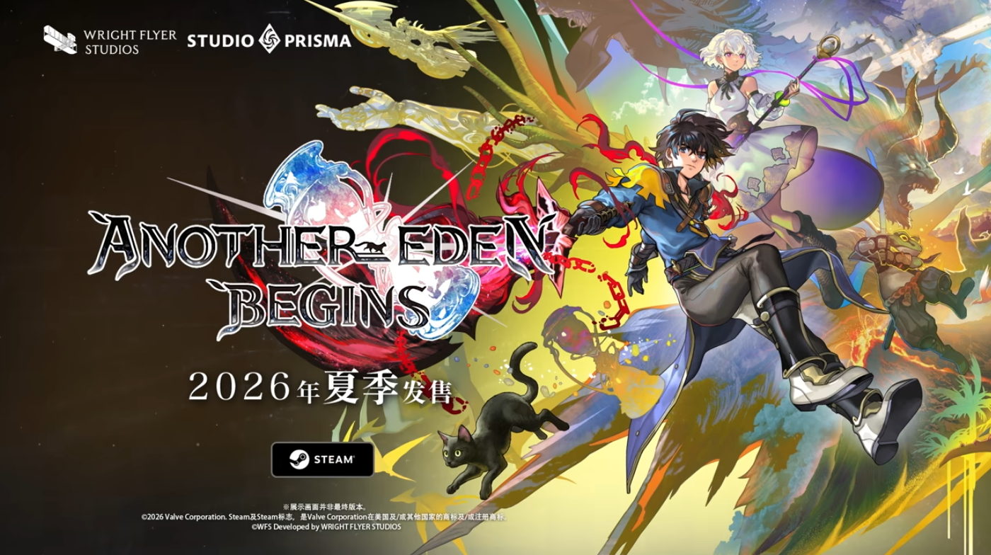 《另一个伊甸 Begins》是由Light Flyer Studio预计于2026年9月17日在Nintendo Switch、Switch 2、Steam平台发售。本作是以该公司正在运营中的手游RPG《另一个伊甸:超越时空的猫》(以下简称《超越时空的猫》)为基础重新打造的作品。