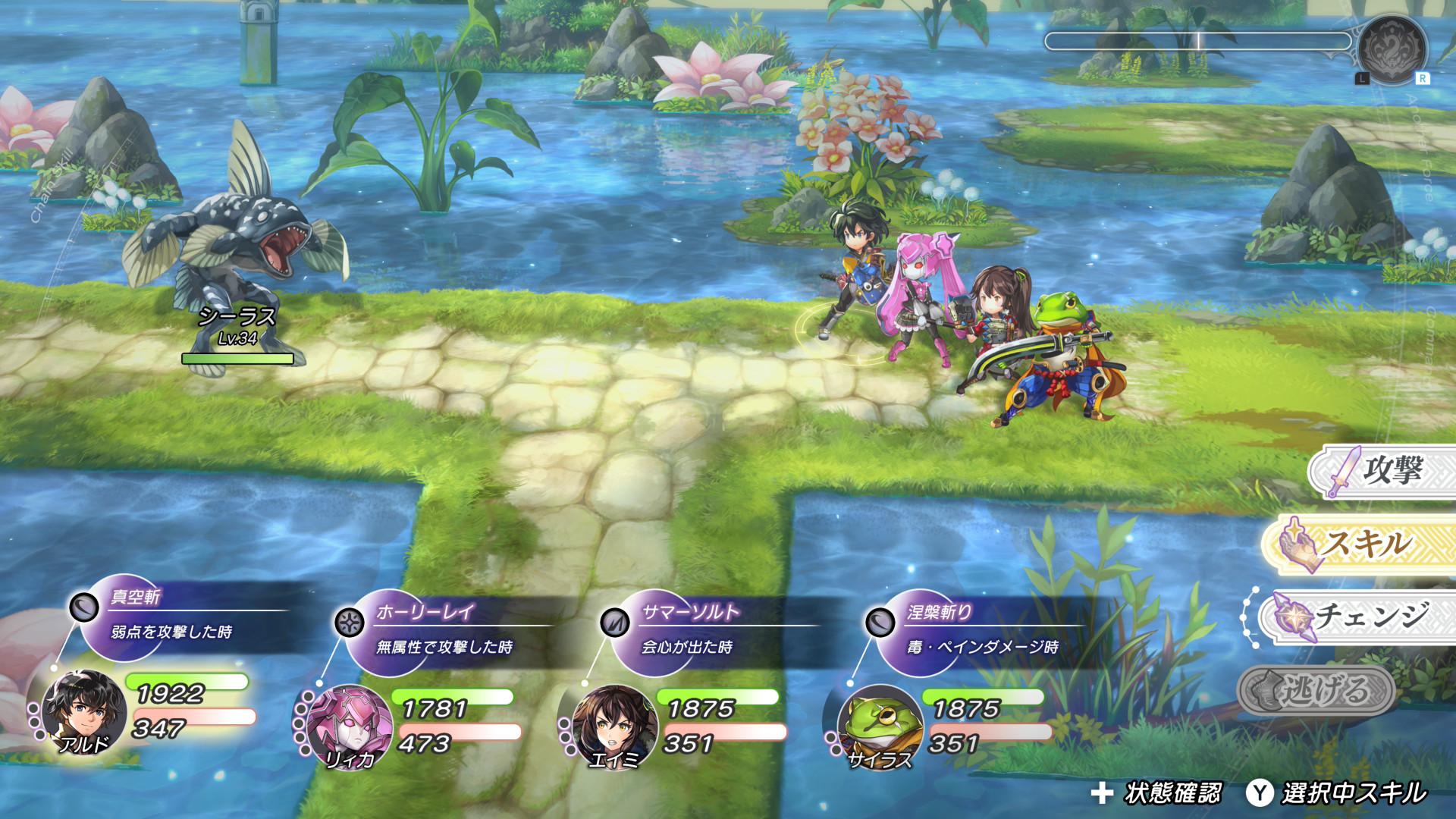在手机版《超越时空的猫》中,玩家需要根据自己所拥有的角色(即抽卡结果)来构建策略,这方面占比较大。而本作在去除了抽卡机制、针对主机平台进行重构后,玩家可以凭自己的意志选择角色。组队的乐趣成为了核心,而最能象征自由度和构建深度的要素,正是连锁技能。在试玩中,笔者只能连接2次左右的连锁,但感觉通过属性和条件的组合,完全可以实现更长时间的持续连携。