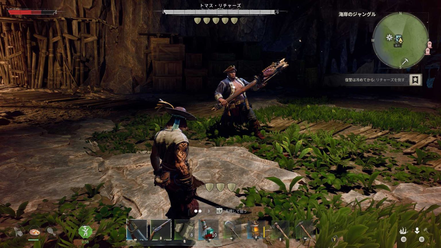 本作将探索、建造、战斗、航海无缝地连接在了一起。由于不再需要管理饥饿度等状态,玩家可以尽情享受「为了变强而探索→收集素材强化装备→航向新的岛屿」这一流程。这种将冒险元素置于生存元素之上的设计,恰恰营造出了理想的海盗生活。巡游未知岛屿的冒险、硬核的战斗系统、重建海盗团的故事,以及在大海上的航行与海战——所有这些内容都被精心制作,让人沉浸于「作为一名海盗生活」的真实感之中。游戏尽可能减少了繁琐的要素,浓缩了「快乐的时光」,可以说是一款即使闲暇时间较少的人也能轻松享受的生存建造游戏。因为总有无数想做的事情,呈现出的正是理想中的海盗生活,不知不觉间,笔者便完全忘记了时间。