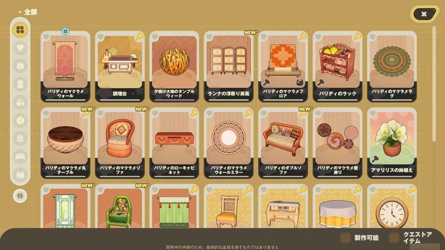 但话说回来,为了我心爱的行星“游戏星”的成长,我必须努力一把。无论如何,我需要凑齐家具。在商店购买也不错,但初期商品数量有限是个问题。这里的最佳策略应该是大量制作理想中的家具。