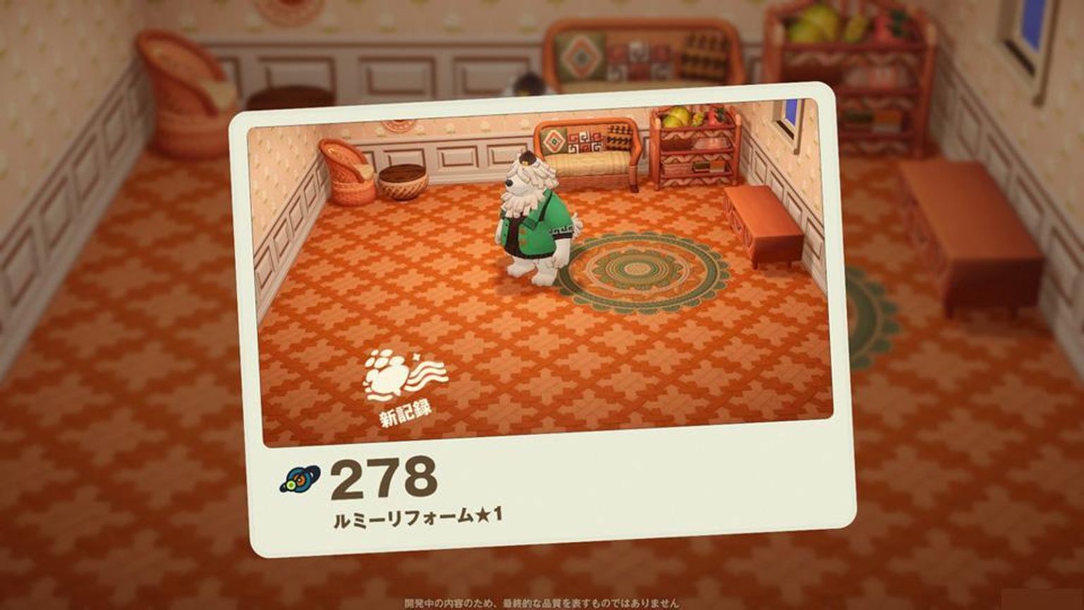 笔者看到这个任务时,有点不知所措。因为我非常不擅长生活模拟游戏中的室内搭配。以前住在某个岛上时,因为按照稀有度顺序摆放家中物品,结果住在一个“正红色幕布墙壁、地铁站台风格地板、房间正中央放马桶”的家里。我对家具既没有执着,也没有品味。