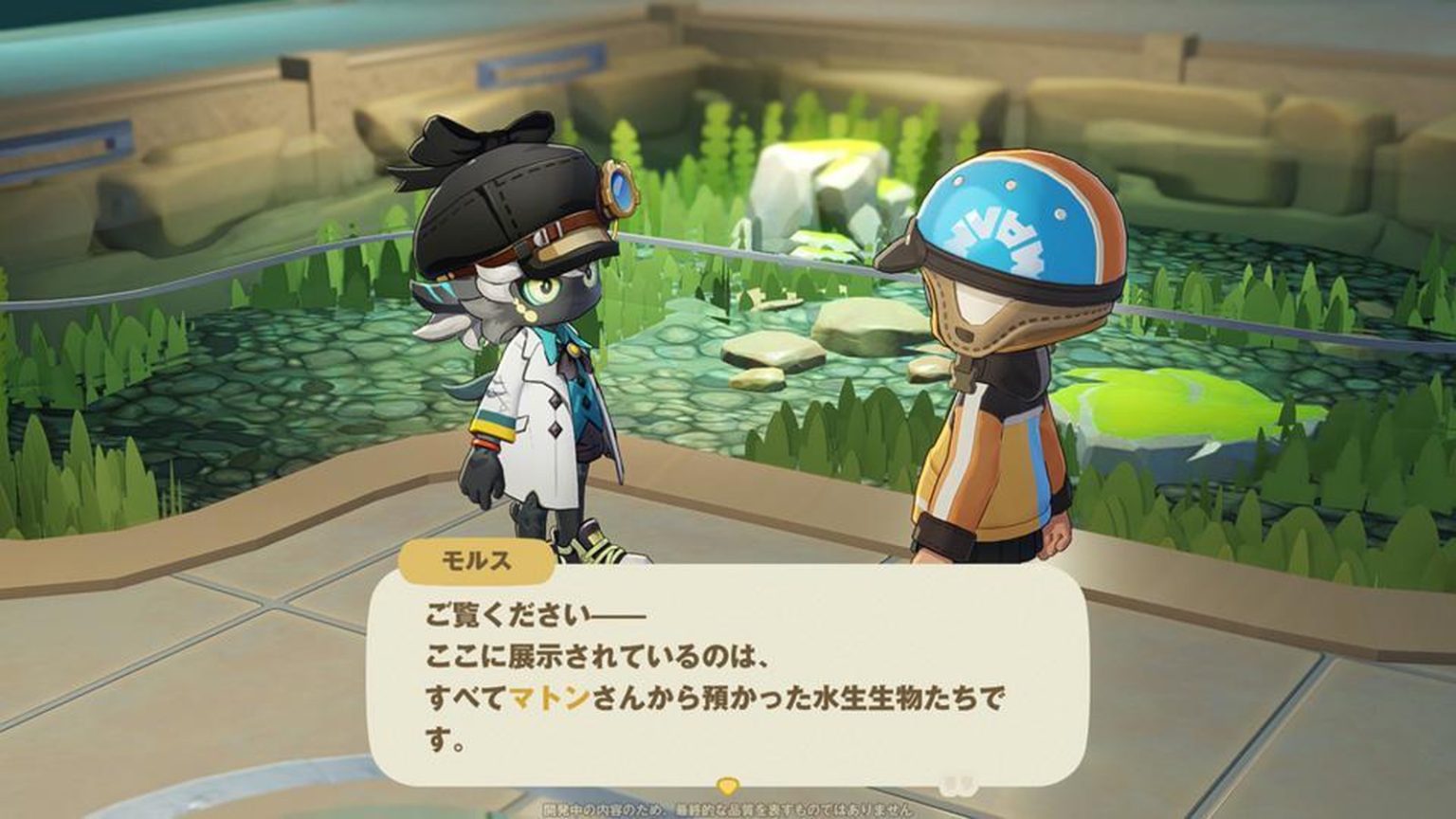 更令人开心的是这些鱼的收容设施。初期阶段,你需要在不到四张半榻榻米大小的空间里塞进10到20条生物,可能会觉得有点寒酸。但请放心。收集到一定数量的生物后,收容设施会升级为名为“万象馆”的建筑。那是一座堪比国立科学博物馆的巨大建筑物。按照海水鱼、淡水鱼等栖息地精心设计的各个水槽,光是看看就很有趣,单手拿着手机相机专门寻找适合拍照的景点也是一种乐趣。