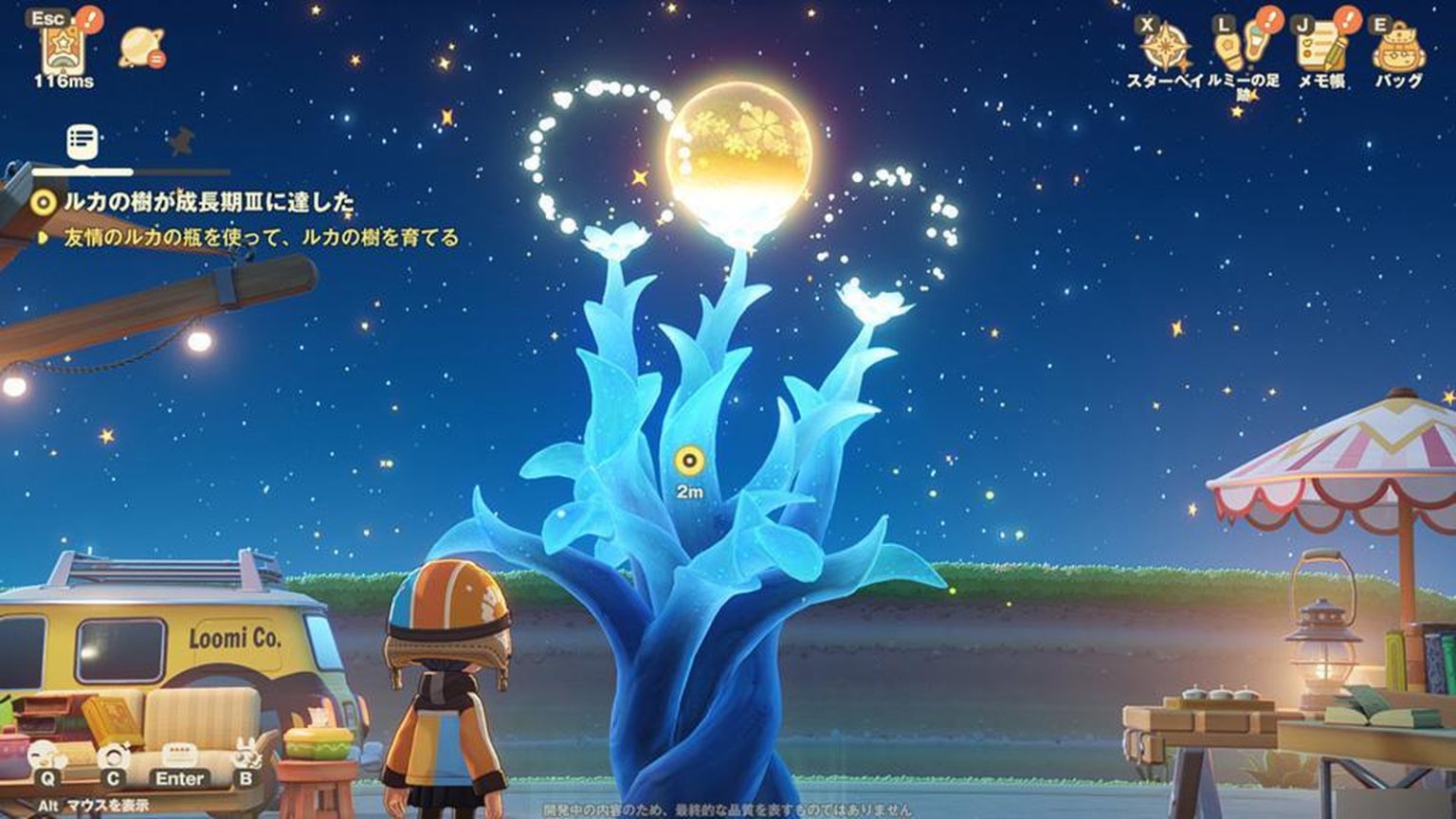 完成活动,露卡之树就会成长。露卡之树成长,行星会进一步发生变化。于是能做的事情又增加了,在做这些事情的过程中,露卡之树又会成长……如此陷入无限循环。越是沉迷,就越能看到下一个深度,真可谓是披着可爱外皮的无底沼泽。露卡之树可以设置“露卡之实”,根据果实的种类,行星还会发生特别的变化。从居民交流等途径获得的露卡之实的完美收集,也是无尽的终局内容之一。